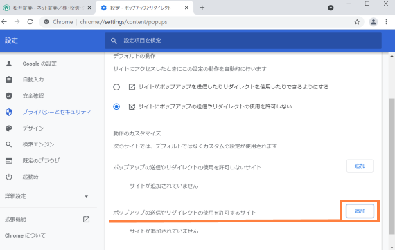 | ※ | 「このサイトのポップアップを常に許可」を押すことでも許可できます。 |